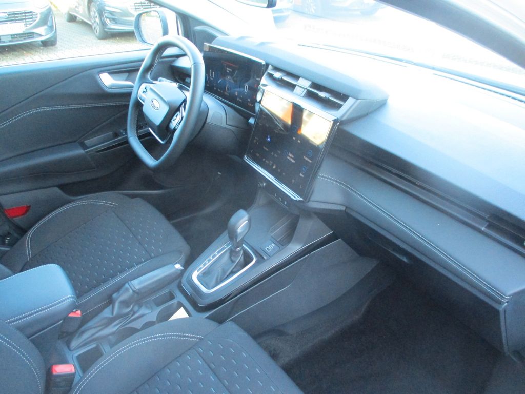 6 Lautsprecher, Ambiente-Beleuchtung vorn (LED), Antischlupfregelung (ASR), Audio-Navigationssystem Ford Cloud-Navigationssystem, Audiobedienung am Lenkrad, Außenspiegel elektr. verstell- und heizbar, Blinkleuchte in Außenspiegel integriert, Body-Styling-Paket, Bordcomputer, Dachhimmel Stoff, Eco-Anzeige für verbrauchsoptimiertes Fahren (EcoCoach), Einparkhilfe hinten, Fahrassistenz-System: Berganfahr-Assistent (Hill-Holder), Fahrassistenz-System: Falschfahrer-Warnfunktion, Fahrassistenz-System: Fernlichtassistent (Scheinwerfer mit Abblendautomatik), Fahrassistenz-System: Notbrems-Assistent, Fahrassistenz-System: Post-Collision-System, Fahrassistenz-System: Pre-Collision-System, Fahrassistenz-System: Spurhalteassistent mit Müdigkeitserkennungs-Sensor, Fahrassistenz-System: Verkehrsschildassistent, Farbdisplay (12 Zoll), Fensterheber elektrisch vorn + hinten mit Komfortschließung, Fußmatten Teppich, Getriebe 7-Gang - Doppelkupplungsgetriebe, Heckleuchten LED, Innenraumfilter: Staub- und Pollenfilter, Innenspiegel mit Abblendautomatik, Intelligent Protection System (IPS), Intelligenter Geschwindigkeits-Begrenzer, Isofix-Aufnahmen für Kindersitz, Karosserie: 5-türig, Klimaautomatik 2-Zonen, Kopfstützen hinten mechan. verstellbar (3 Stück), Laderaumboden variabel (Ford Megabox), Lendenwirbelstütze Sitz vorn links, Lenksäule (Lenkrad) höhen-/längsverstellbar, LM-Felgen, Mild-Hybrid 114 kW (Motor 1,0 Ltr. - 114 kW EcoBoost), Modellpflege, My Key (2. Fahrzeugschlüssel programmierbar), Nebelscheinwerfer LED, Otto-Partikelfilter (OPF), Radioempfang digital (DAB), Radstand 2588 mm, Reifen-Reparaturkit, Reifendruck-Kontrollsystem, Rücksitzlehne geteilt/klappbar (60:40), Schadstoffarm nach Abgasnorm Euro 6d-TEMP, Schadstoffarm nach Abgasnorm Euro 6e, Scheinwerfer LED, Scheinwerfer-Assistent mit Tag-/Nachtsensor, Sitz vorn links höhenverstellbar, Sonnenblende links mit Spiegel (beleuchtet), Sonnenblende rechts mit Spiegel (beleuchtet), Sportsitze vorn, Standard Variante, Start/Stop-Anlage, Türgriffe außen Wagenfarbe