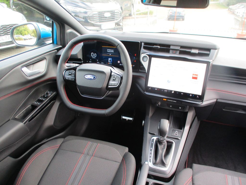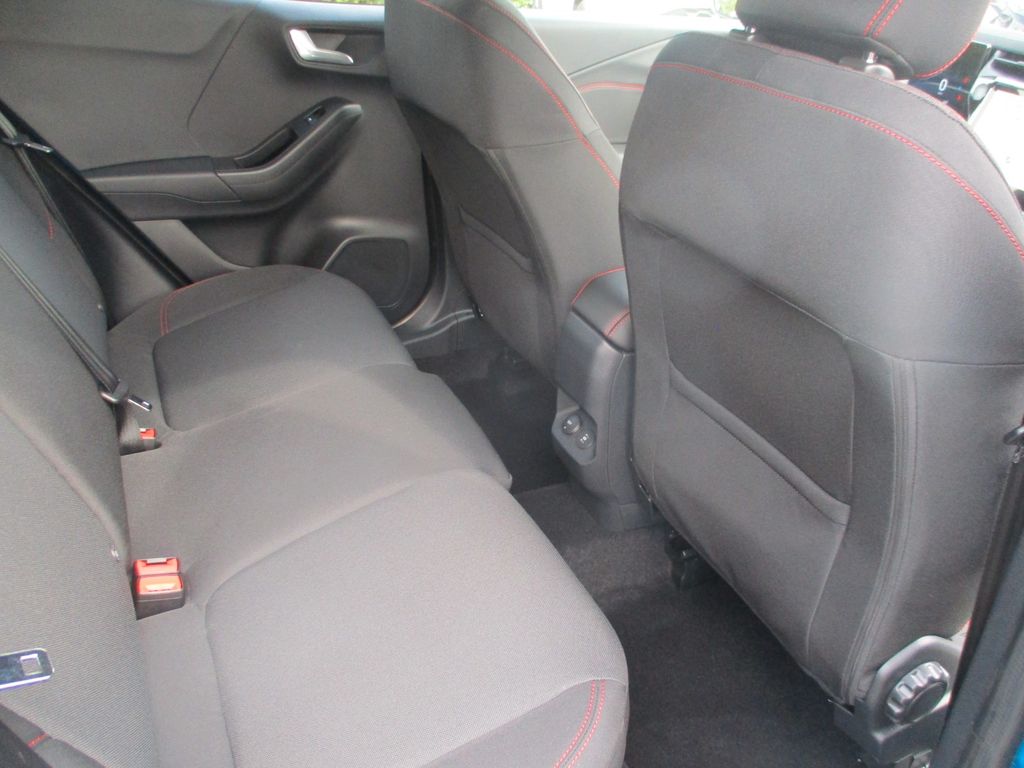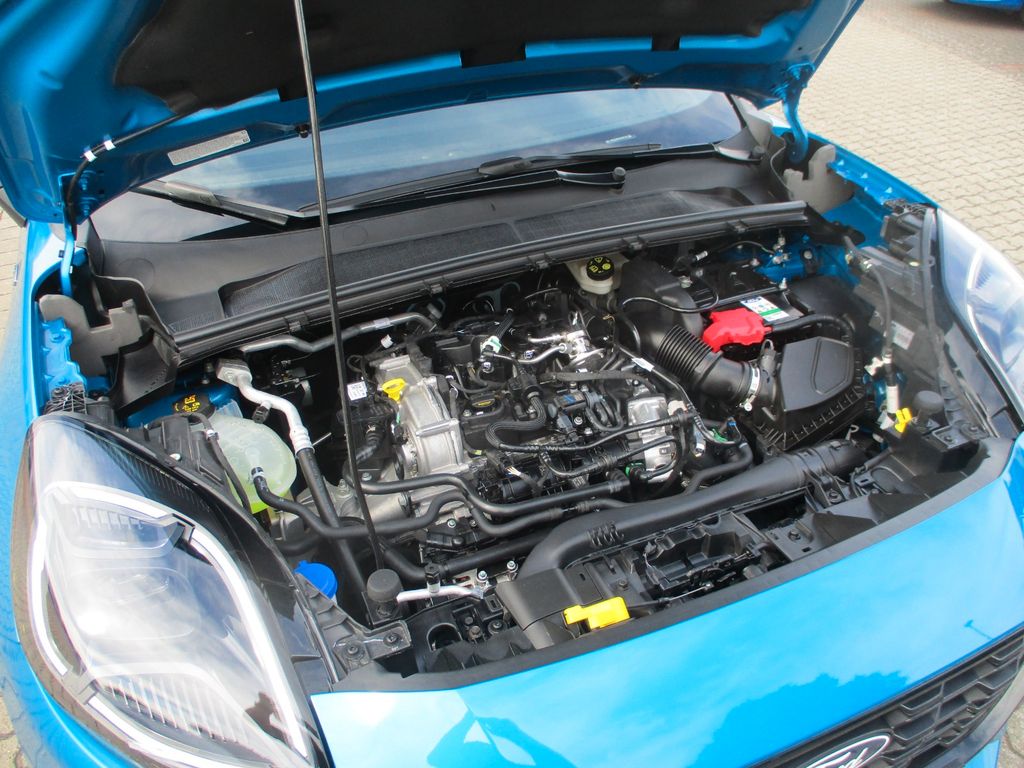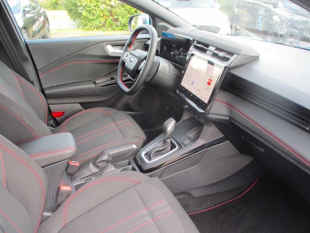 Ambiente-Beleuchtung vorn (LED), Antischlupfregelung (ASR), Audio-Navigationssystem Ford Cloud-Navigationssystem, Audiobedienung am Lenkrad, Außenspiegel elektr. anklappbar, Außenspiegel elektr. verstell- und heizbar, Body-Styling-Paket, Dachhimmel Stoff, dunkel, Eco-Anzeige für verbrauchsoptimiertes Fahren (EcoCoach), Einparkhilfe hinten, Fahrassistenz-System: Berganfahr-Assistent (Hill-Holder), Fahrassistenz-System: Falschfahrer-Warnfunktion, Fahrassistenz-System: Fernlichtassistent (Scheinwerfer mit Abblendautomatik), Fahrassistenz-System: Notbrems-Assistent, Fahrassistenz-System: Post-Collision-System, Fahrassistenz-System: Pre-Collision-System (Kamera-basiert), Fahrassistenz-System: Spurhalteassistent mit Müdigkeitserkennungs-Sensor, Fahrassistenz-System: Verkehrsschildassistent, Farbdisplay für Bordcomputer, Fensterheber elektrisch vorn + hinten mit Komfortschließung, Fußmatten Teppich, Getriebe 7-Gang - Doppelkupplungsgetriebe, Heckleuchten LED, Innenraumfilter: Staub- und Pollenfilter, Innenspiegel mit Abblendautomatik, Intelligent Protection System (IPS), Intelligenter Geschwindigkeits-Begrenzer, Isofix-Aufnahmen für Kindersitz, Karosserie: 5-türig, Klimaautomatik 2-Zonen, Kombiinstrument Digitalanzeige 12,3 Zoll, Kopfstützen hinten mechan. verstellbar (3 Stück), Laderaumboden variabel (Ford Megabox), Lendenwirbelstütze Sitz vorn links, Lenkrad (Sport/Leder, ST), Lenksäule (Lenkrad) höhen-/längsverstellbar, LM-Felgen, Mild-Hybrid 92 kW (Motor 1,0 Ltr. - 92 kW EcoBoost), Modellpflege, My Key (2. Fahrzeugschlüssel programmierbar), Nebelscheinwerfer LED, Otto-Partikelfilter (OPF), Pedale Aluminium, Radioempfang digital (DAB), Radstand 2588 mm, Reifen-Reparaturkit, Reifendruck-Kontrollsystem, Rückfahrkamera, Rücksitzlehne geteilt/klappbar (60:40), Schadstoffarm nach Abgasnorm Euro 6d-TEMP, Schadstoffarm nach Abgasnorm Euro 6e, Scheinwerfer LED, Scheinwerfer-Assistent mit Tag-/Nachtsensor, Sitz vorn links höhenverstellbar, Sonnenblende links mit Spiegel (beleuchtet), Sonnenblende rechts mit Spiegel (beleuchtet), Sport-Fahrwerk, Sportsitze vorn, Standard Variante, Start/Stop-Anlage, Türgriffe außen Wagenfarbe