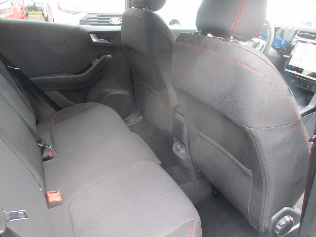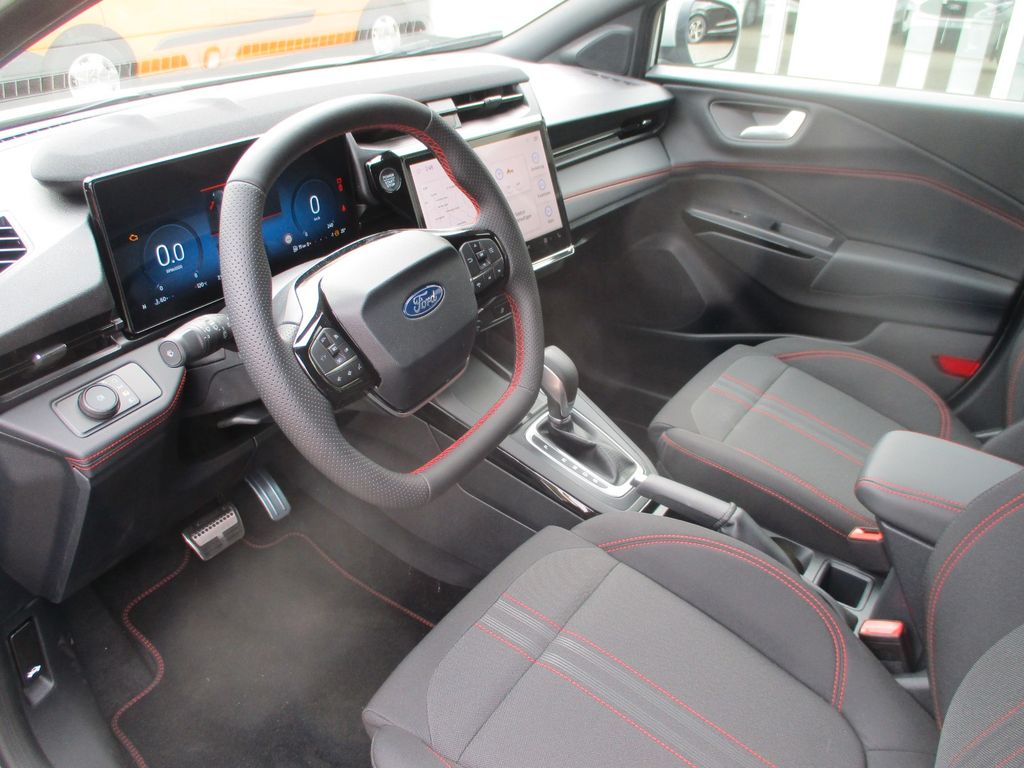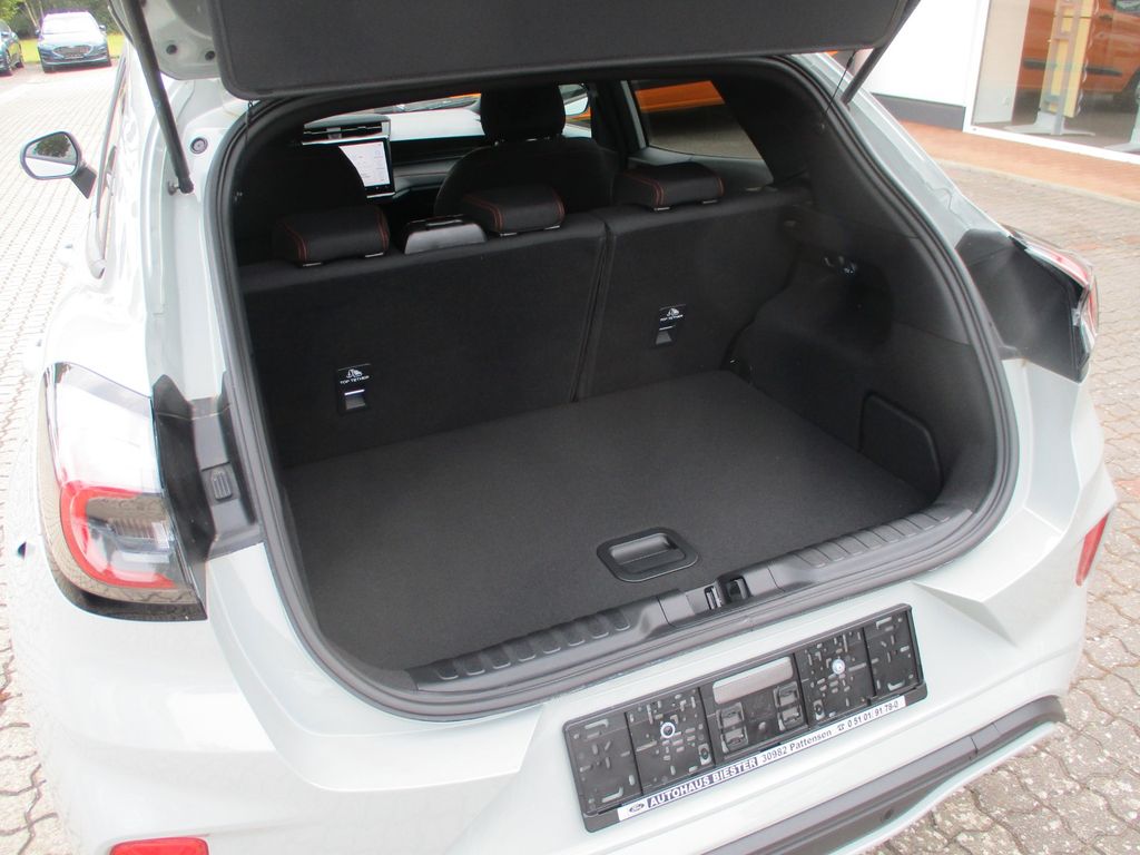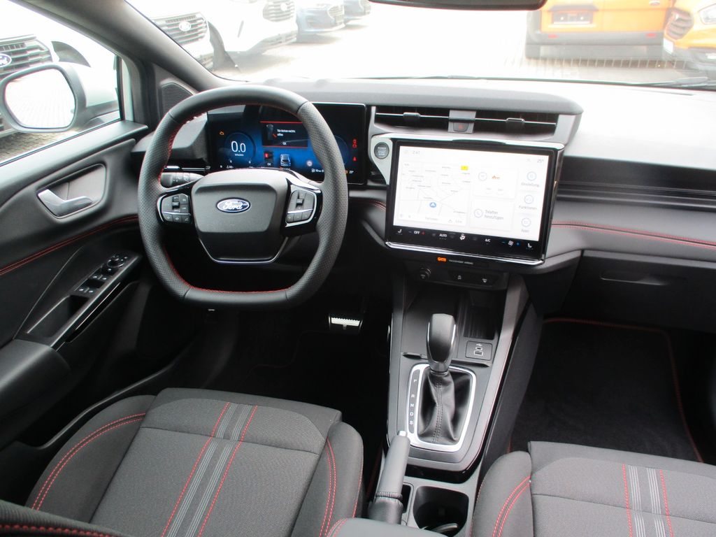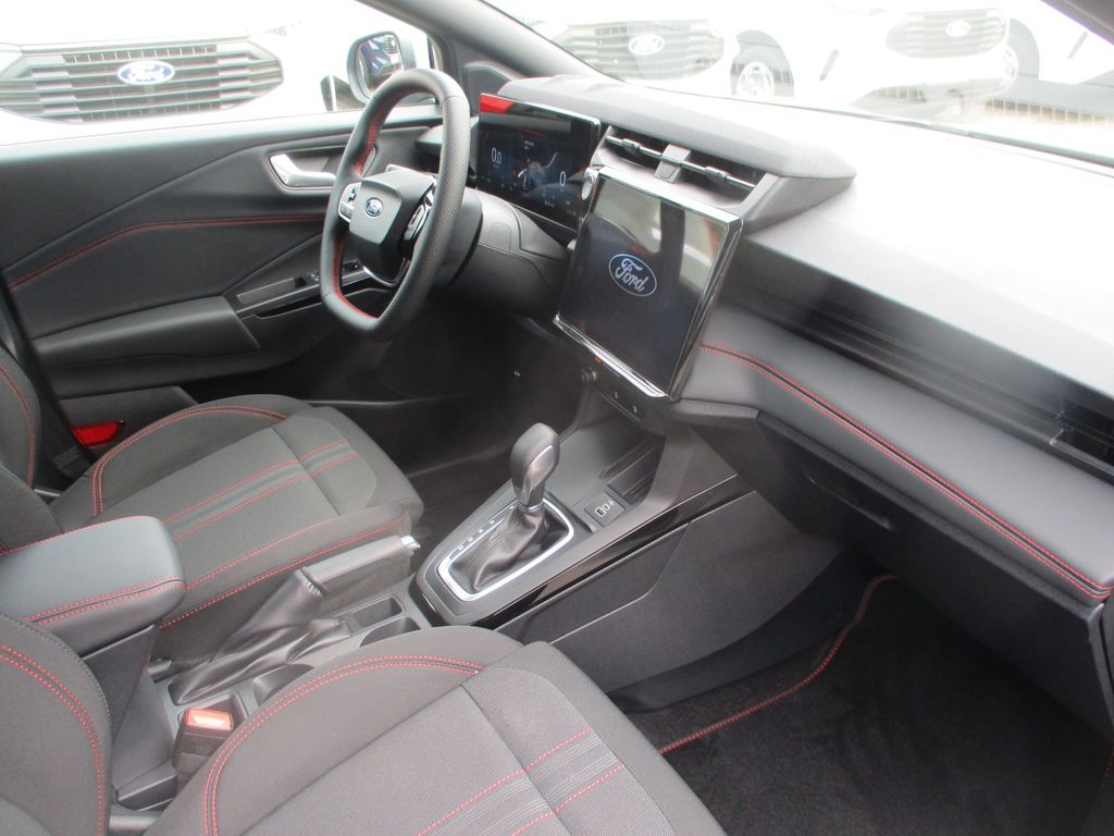 Ambiente-Beleuchtung vorn (LED), Antischlupfregelung (ASR), Audio-Navigationssystem Ford Cloud-Navigationssystem, Audiobedienung am Lenkrad, Außenspiegel elektr. anklappbar, Außenspiegel elektr. verstell- und heizbar, Body-Styling-Paket, Dachhimmel Stoff, dunkel, Eco-Anzeige für verbrauchsoptimiertes Fahren (EcoCoach), Einparkhilfe hinten, Fahrassistenz-System: Berganfahr-Assistent (Hill-Holder), Fahrassistenz-System: Falschfahrer-Warnfunktion, Fahrassistenz-System: Fernlichtassistent (Scheinwerfer mit Abblendautomatik), Fahrassistenz-System: Notbrems-Assistent, Fahrassistenz-System: Post-Collision-System, Fahrassistenz-System: Pre-Collision-System (Kamera-basiert), Fahrassistenz-System: Spurhalteassistent mit Müdigkeitserkennungs-Sensor, Fahrassistenz-System: Verkehrsschildassistent, Farbdisplay für Bordcomputer, Fensterheber elektrisch vorn + hinten mit Komfortschließung, Fußmatten Teppich, Getriebe 7-Gang - Doppelkupplungsgetriebe, Heckleuchten LED, Innenraumfilter: Staub- und Pollenfilter, Innenspiegel mit Abblendautomatik, Intelligent Protection System (IPS), Intelligenter Geschwindigkeits-Begrenzer, Isofix-Aufnahmen für Kindersitz, Karosserie: 5-türig, Klimaautomatik 2-Zonen, Kombiinstrument Digitalanzeige 12,3 Zoll, Kopfstützen hinten mechan. verstellbar (3 Stück), Laderaumboden variabel (Ford Megabox), Lendenwirbelstütze Sitz vorn links, Lenkrad (Sport/Leder, ST), Lenksäule (Lenkrad) höhen-/längsverstellbar, LM-Felgen, Mild-Hybrid 92 kW (Motor 1,0 Ltr. - 92 kW EcoBoost), Modellpflege, My Key (2. Fahrzeugschlüssel programmierbar), Nebelscheinwerfer LED, Otto-Partikelfilter (OPF), Pedale Aluminium, Radioempfang digital (DAB), Radstand 2588 mm, Reifen-Reparaturkit, Reifendruck-Kontrollsystem, Rückfahrkamera, Rücksitzlehne geteilt/klappbar (60:40), Schadstoffarm nach Abgasnorm Euro 6d-TEMP, Schadstoffarm nach Abgasnorm Euro 6e, Scheinwerfer LED, Scheinwerfer-Assistent mit Tag-/Nachtsensor, Sitz vorn links höhenverstellbar, Sonnenblende links mit Spiegel (beleuchtet), Sonnenblende rechts mit Spiegel (beleuchtet), Sport-Fahrwerk, Sportsitze vorn, Standard Variante, Start/Stop-Anlage, Türgriffe außen Wagenfarbe