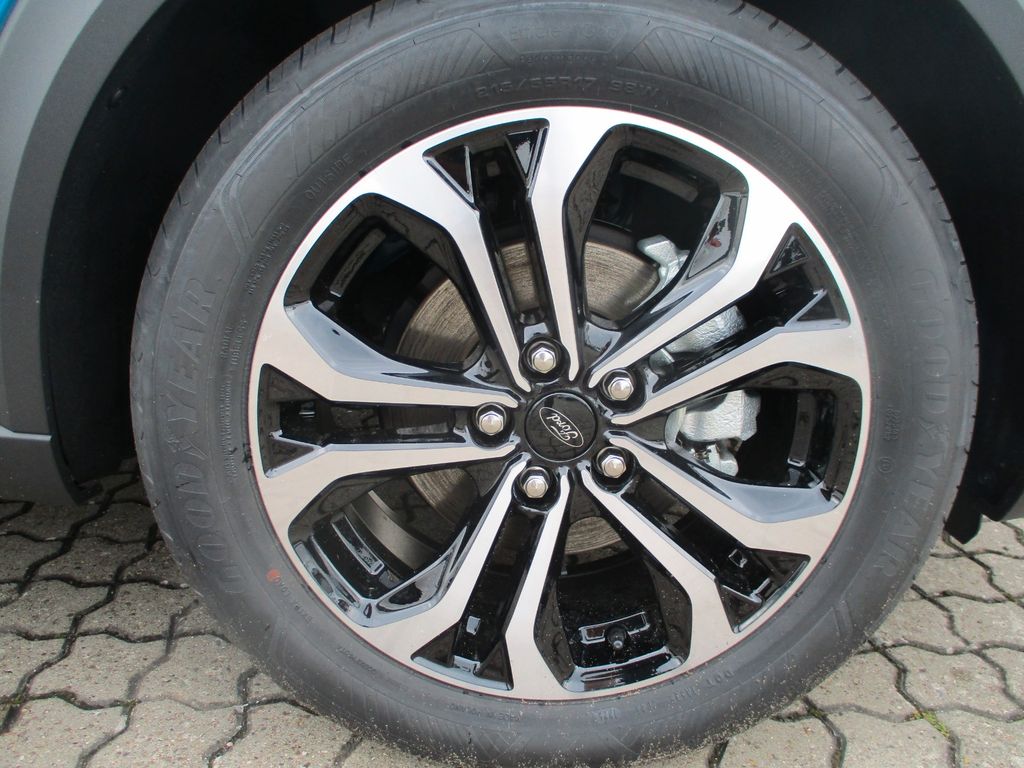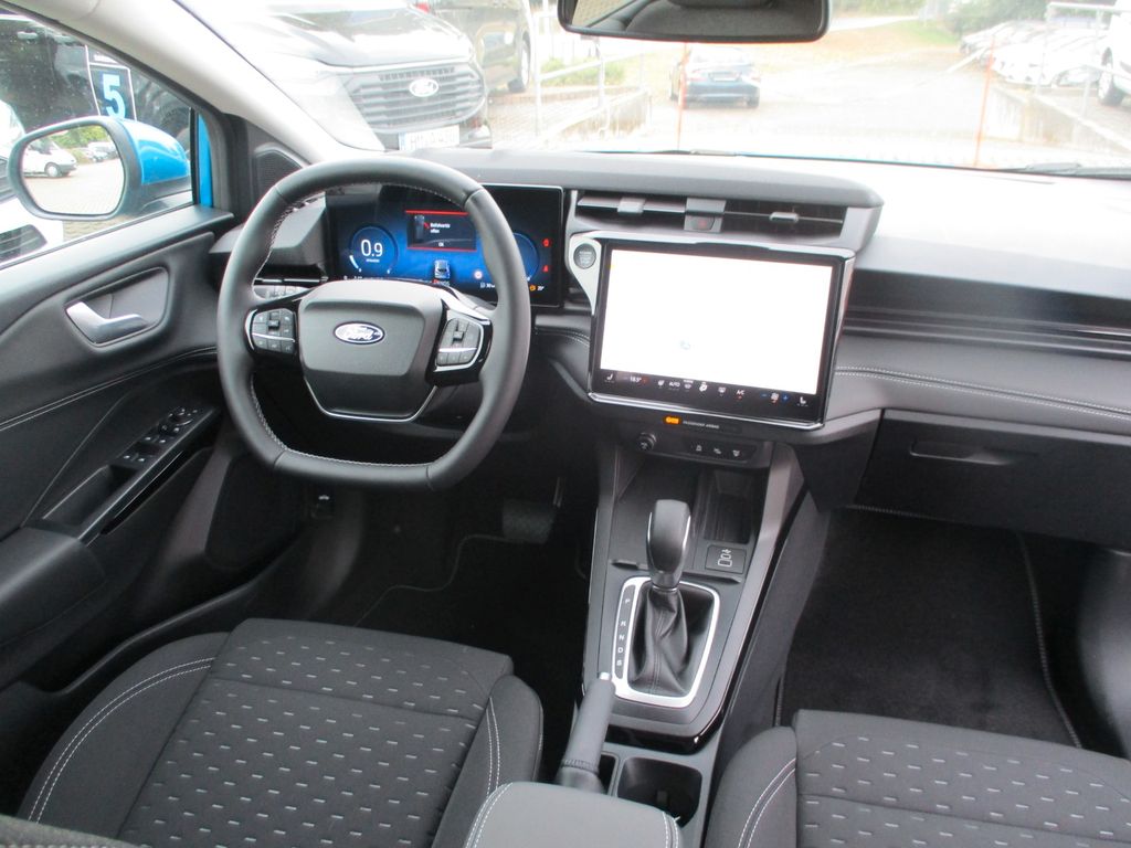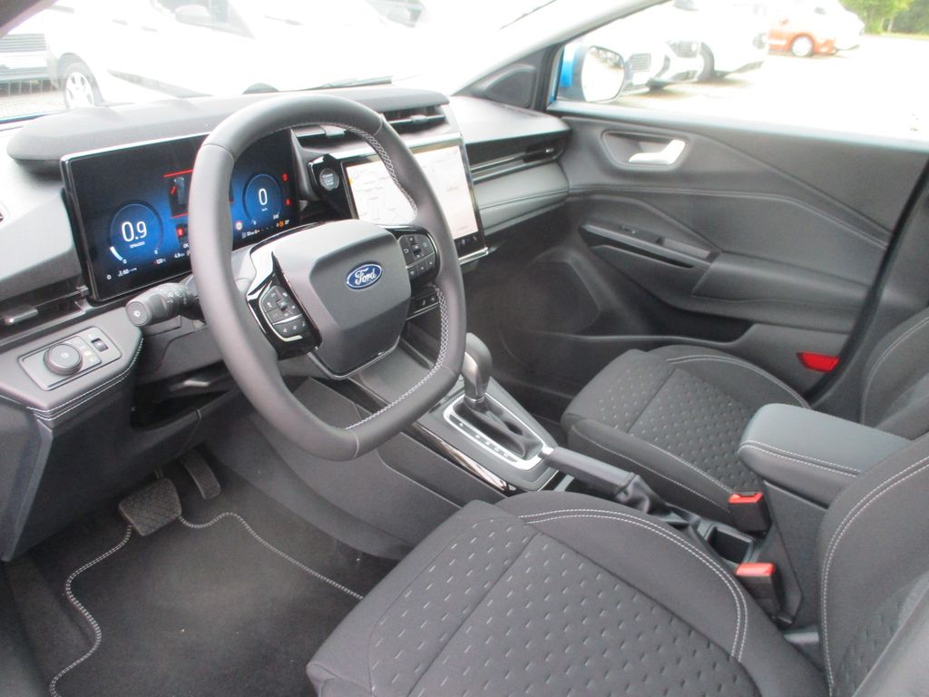 Ambiente-Beleuchtung vorn (LED), Antischlupfregelung (ASR), Audio-Navigationssystem Ford Cloud-Navigationssystem, Audiobedienung am Lenkrad, Außenspiegel elektr. verstell- und heizbar, Blinkleuchte in Außenspiegel integriert, Body-Styling-Paket, Bordcomputer, Dachhimmel Stoff, Eco-Anzeige für verbrauchsoptimiertes Fahren (EcoCoach), Einparkhilfe hinten, Fahrassistenz-System: Berganfahr-Assistent (Hill-Holder), Fahrassistenz-System: Falschfahrer-Warnfunktion, Fahrassistenz-System: Fernlichtassistent (Scheinwerfer mit Abblendautomatik), Fahrassistenz-System: Notbrems-Assistent, Fahrassistenz-System: Post-Collision-System, Fahrassistenz-System: Pre-Collision-System (Kamera-basiert), Fahrassistenz-System: Spurhalteassistent mit Müdigkeitserkennungs-Sensor, Fahrassistenz-System: Verkehrsschildassistent, Fensterheber elektrisch vorn + hinten mit Komfortschließung, Fußmatten Teppich, Getriebe 7-Gang - Doppelkupplungsgetriebe, Heckleuchten LED, Innenraumfilter: Staub- und Pollenfilter, Innenspiegel mit Abblendautomatik, Intelligent Protection System (IPS), Intelligenter Geschwindigkeits-Begrenzer, Isofix-Aufnahmen für Kindersitz, Karosserie: 5-türig, Klimaautomatik 2-Zonen, Kopfstützen hinten mechan. verstellbar (3 Stück), Laderaumboden variabel (Ford Megabox), Lendenwirbelstütze Sitz vorn links, Lenksäule (Lenkrad) höhen-/längsverstellbar, LM-Felgen, Mild-Hybrid 114 kW (Motor 1,0 Ltr. - 114 kW EcoBoost), Modellpflege, My Key (2. Fahrzeugschlüssel programmierbar), Nebelscheinwerfer LED, Otto-Partikelfilter (OPF), Radioempfang digital (DAB), Radstand 2588 mm, Reifen-Reparaturkit, Reifendruck-Kontrollsystem, Rücksitzlehne geteilt/klappbar (60:40), Schadstoffarm nach Abgasnorm Euro 6d-TEMP, Schadstoffarm nach Abgasnorm Euro 6e, Scheinwerfer LED, Scheinwerfer-Assistent mit Tag-/Nachtsensor, Sitz vorn links höhenverstellbar, Sonderlackierung Frost-Weiß, Sonnenblende links mit Spiegel (beleuchtet), Sonnenblende rechts mit Spiegel (beleuchtet), Sportsitze vorn, Standard Variante, Start/Stop-Anlage, Türgriffe außen Wagenfarbe